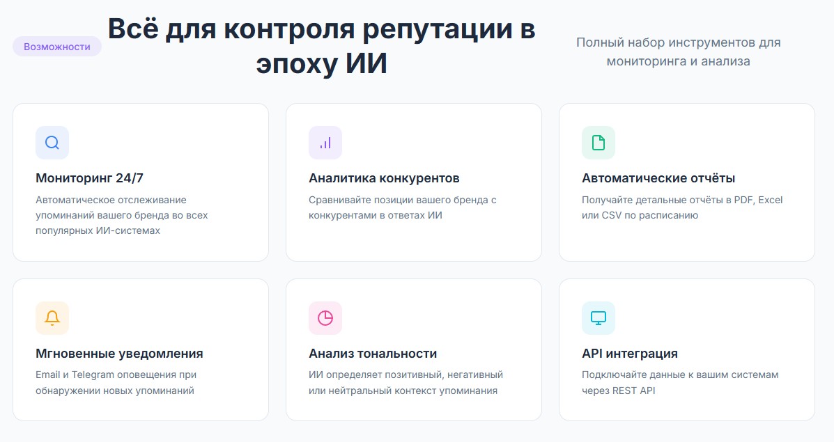 - Работаем с отзывами, упоминаниями бренда и ссылками, чтобы увеличить вероятность цитирования сайта в генеративных ответах.